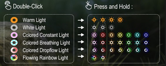 • Front light modes: 3 levels + double-click for Turbo + triple-click for Strobe + SOS