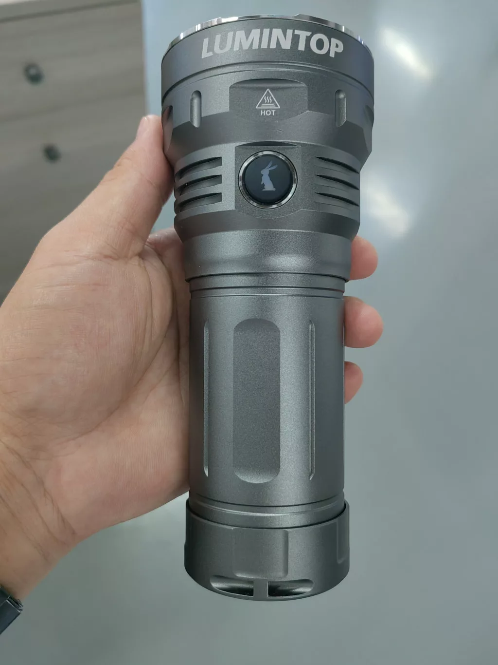 Lumintop GT4695 searchlight with 15,000 lumens, 800-meter range, and 32,000 mAh battery capacity