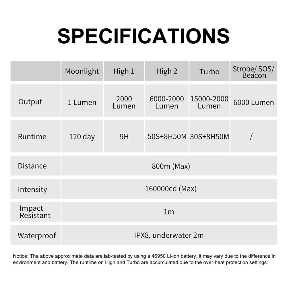 • 15,000 lumens max output in Turbo mode