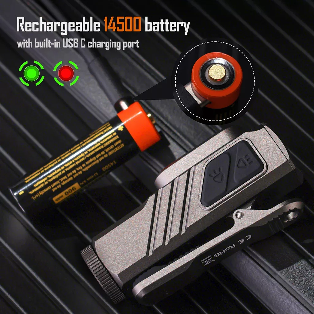 • Recharge & Swap Batteries: Includes a rechargeable 14500 battery with a built-in USB-C charging port and charging indicator. Low on power? Simply swap in regular AA batteries and keep going—no hassle, no extra chargers needed.