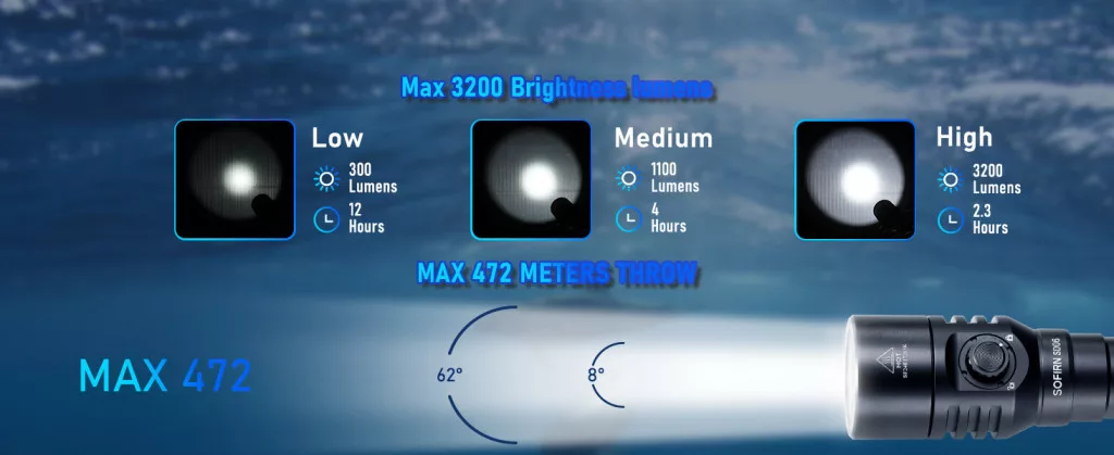 SOFIRN SD06 Diving Flashlight 3200lm Powerful SFT70 LED Scuba Torch