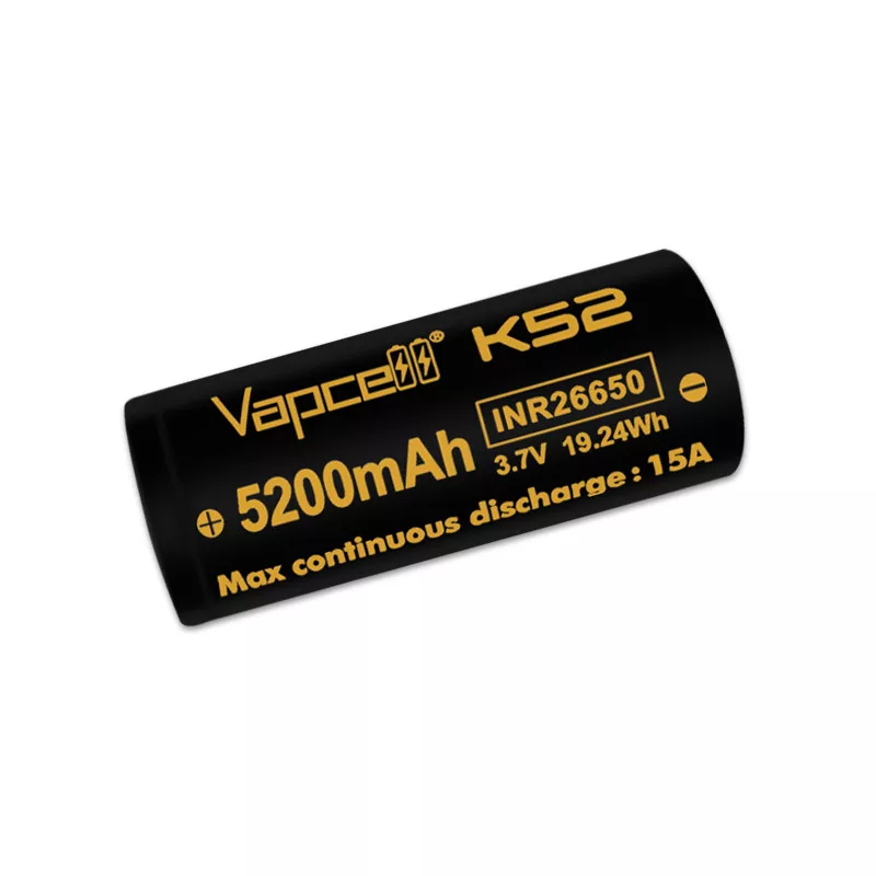 Vapcell 26650 K52 5200mah 15A button top li-ion