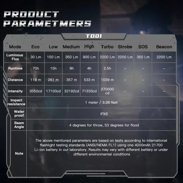 13. Advanced Temperature Regulation(ATR) technology: As the temperature rises, TD01 is programmed to automatically step down and step up the brightness to prevent over-heating.