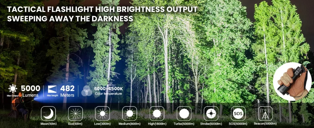 • Flashlight body: Aerospace grade 6061 grade aluminum alloy