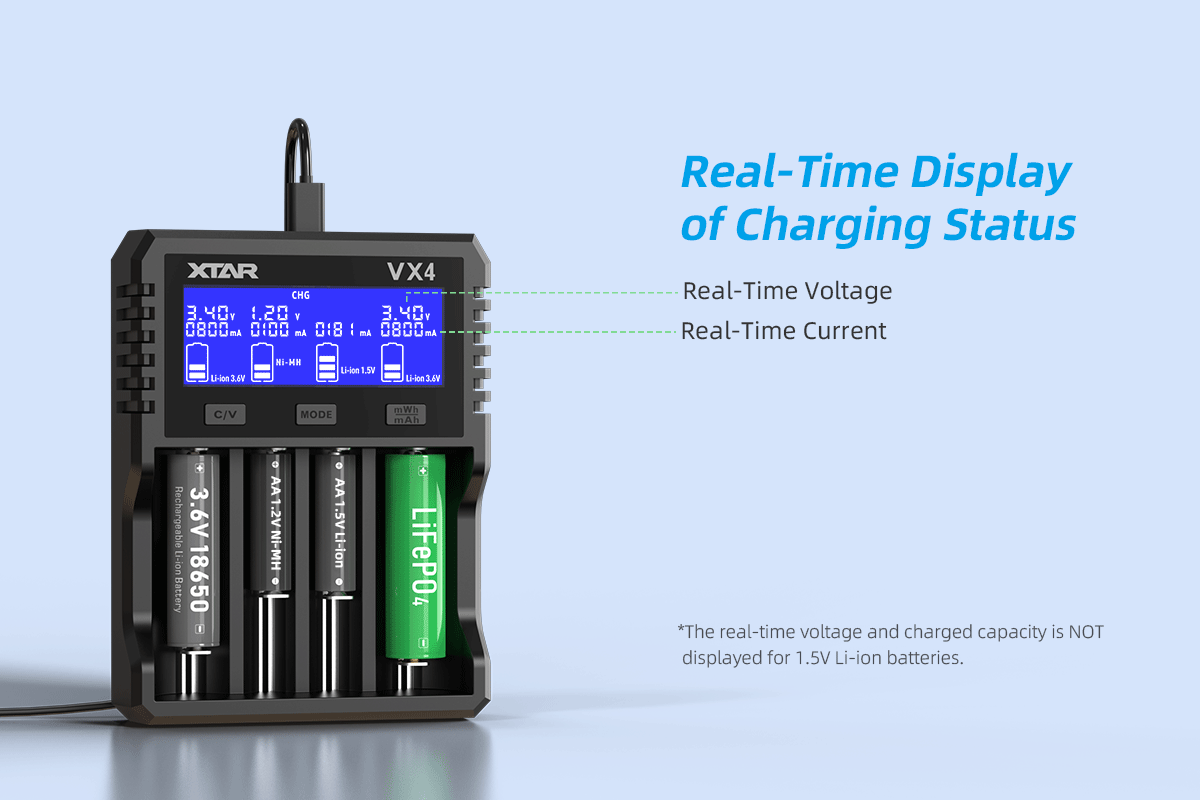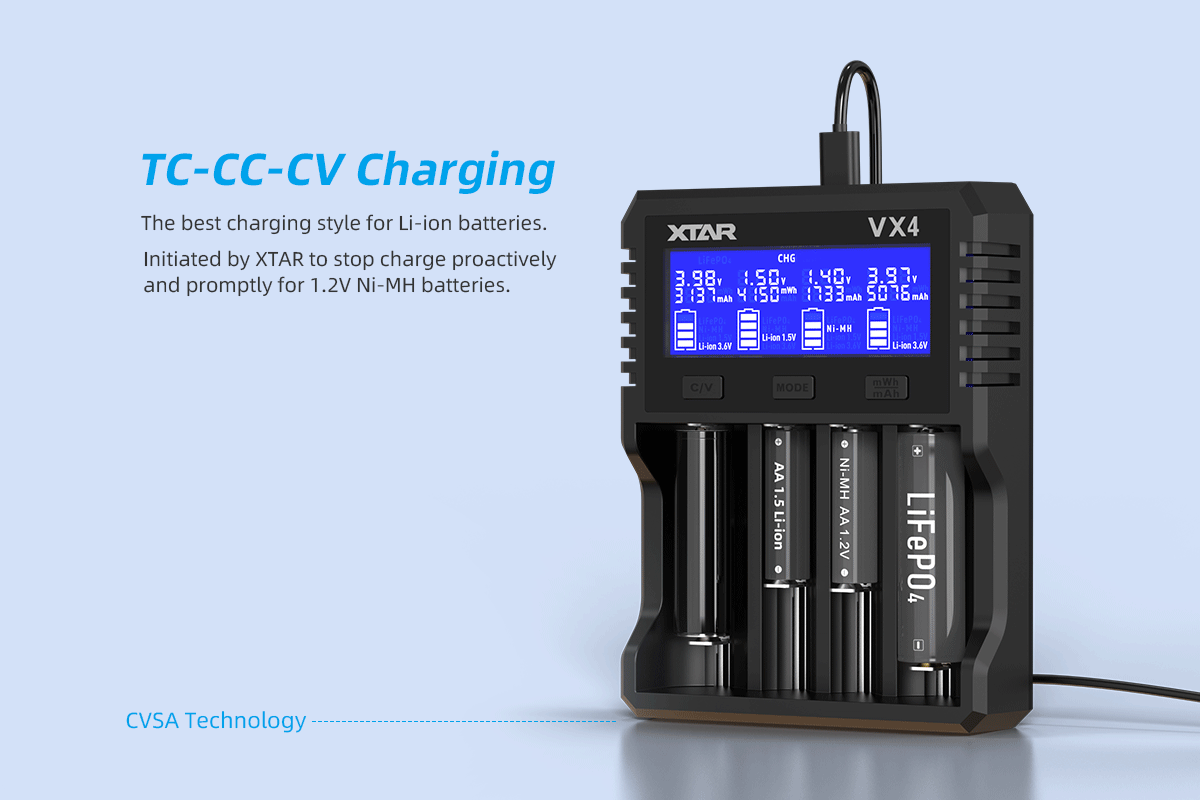 Xtar VX4 battery charger with test function for ALL batteries
