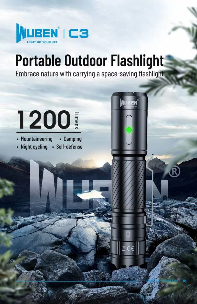 WUBEN C3 1200 Lumens Camping EDC LED Flashlight